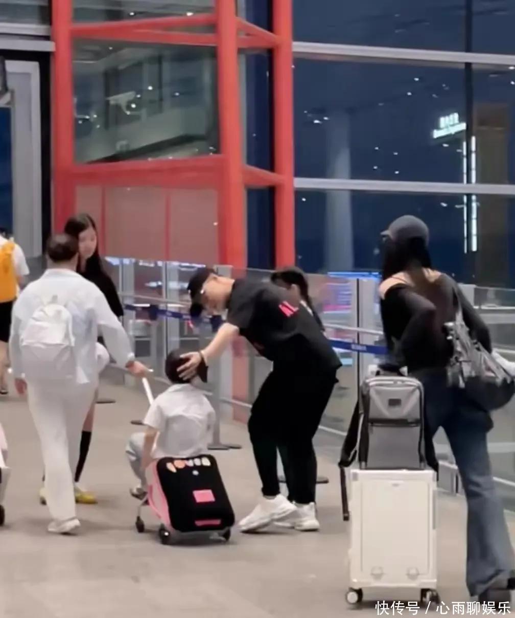 7 月 27 日,汪峰带着四个孩子现身北京机场。